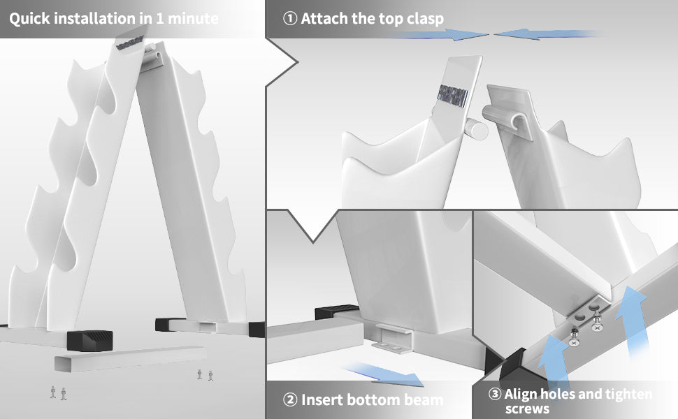• Space-saving design - You can neatly store 4 pairs of dumbbells in a small place. Use this dumbbell rack stand and turn your cluttered workout area into a neat and tidy exercise zone!
